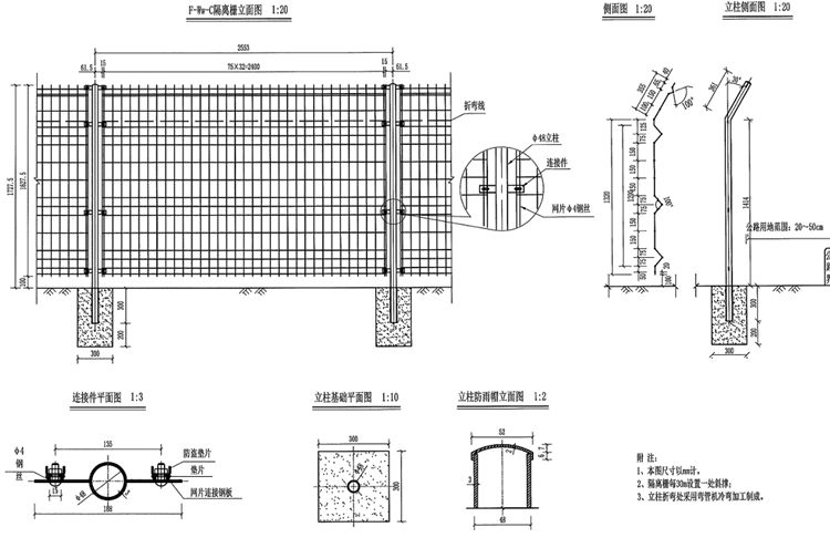 4、F-Ww-C焊接網(wǎng)隔離柵每30m設(shè)置一斜撐;
