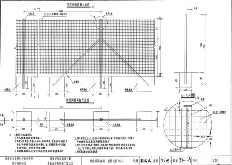 2.焊接網(wǎng)隔離柵立柱及斜撐基礎(chǔ)為現(xiàn)澆素混凝土。