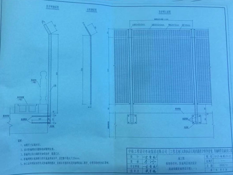 2、高速鐵路防拋網(wǎng)通過地腳螺栓、法蘭盤、連接板等固定在框架橋外側(cè)。