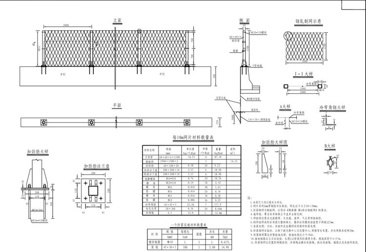 7.表面處理:立柱、連接件及金屬網(wǎng)采用鍍鋅防腐處理。