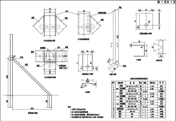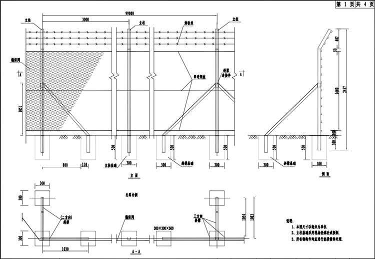 編織網(wǎng)隔離柵的立柱采用冷彎等邊槽鋼,編織網(wǎng)孔尺寸160*80mm,立柱間距為3m。每隔99m設(shè)置一處三向斜撐,凡拐角處均應(yīng)設(shè)置單向斜撐。在跨越天然障礙時,編織網(wǎng)隔離柵的端頭立柱均應(yīng)設(shè)置垂直雙向斜撐。編織網(wǎng)隔離柵的所有鋼構(gòu)件均應(yīng)進行熱浸鍍鋅處理,立柱、斜撐等構(gòu)件的鍍鋅量為600g/㎡,螺栓、螺母等連接件的鍍鋅量為350g/㎡,鋼絲的鍍鋅量為120g/㎡。熱浸鍍鋅所用的鋅應(yīng)為《鋅錠》(GB470-2008)中所規(guī)定的Zn99.995號鋅。浸塑材料采用聚乙烯(PE)高分子涂料,立柱、斜撐浸塑層厚度>0.25mm,網(wǎng)片浸塑層厚度>0.15mm,顏色為綠色,全線色號應(yīng)統(tǒng)一。防腐要求須滿足《公路交通工程鋼構(gòu)件防腐技術(shù)條件》(GB/T 18226-2015)的規(guī)定,涂層性能應(yīng)滿足《公路用防腐蝕粉末涂料及涂層》(JT/T600.1-2004~JT/T600.4-2004)的規(guī)定和要求。立柱基礎(chǔ)采用 C20 預(yù)制素混凝土,斜撐基礎(chǔ)為 C20 現(xiàn)澆素混凝土。三、編織網(wǎng)隔離柵技術(shù)要求及施工注意事項