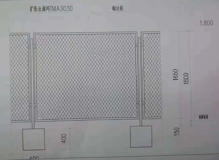 3、網(wǎng)片為30mm*30mm網(wǎng)孔,網(wǎng)絲直徑不小于4.0mm。