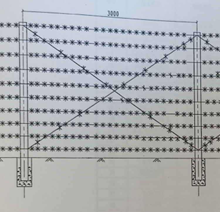 1、刺鋼絲用12號鋼絲,刺間距10厘米。