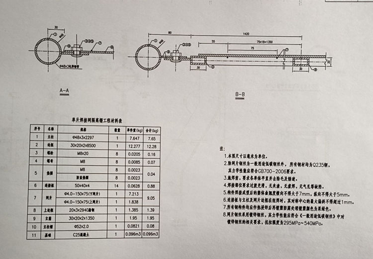 3.除網(wǎng)片鋼絲為一般用途低碳鋼絲外,所有鋼材均為Q235鋼,其力學性能應符合GB700-2006要求。