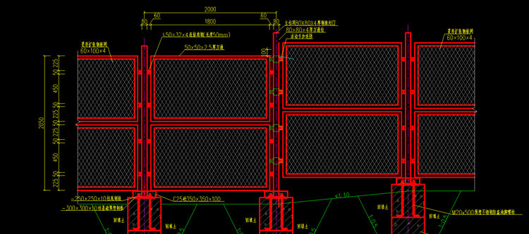 3.本工程內(nèi)所有鐵件除特殊說明外均為Q235低碳鋼,圍網(wǎng)網(wǎng)面及立柱等防腐采用熱鍍鋅270g/㎡,噴塑100μm,噴塑材料:純聚酯室外靜電粉末,螺栓采用304不銹鋼。圍網(wǎng)顏色暫定深圳段采用灰色(色號(hào)RCB:89,102 ,111),惠州段采用墨綠色(色號(hào)RGB:0,128,0 ),實(shí)物顏色以參建各方共同選定為準(zhǔn)。