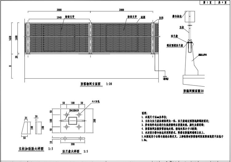5.本次設(shè)計(jì)禁令標(biāo)志采用附著式,附著在防拋網(wǎng)端部立柱上。