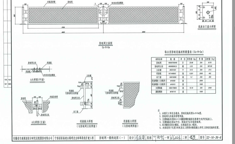 6、防眩網(wǎng)立柱通過連接橫桿及抱箍與梁柱式鋼護欄的第三道橫梁連接。