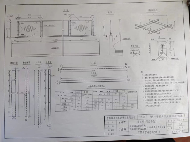 5.防護網(wǎng)防落物網(wǎng)槽鋼及角鋼所用鋼材為低碳合金高強度結構鋼(Q345D),其枝術標堆應符合現(xiàn)行GB/T1591的規(guī)定。