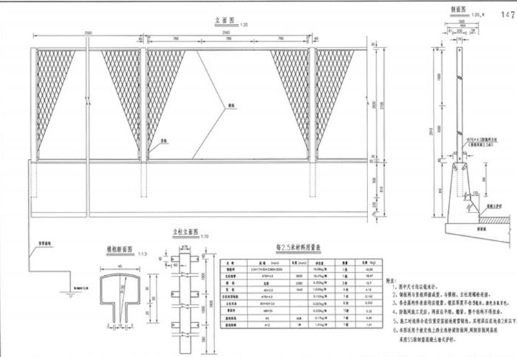 1、圖中鋼板網(wǎng)隔離柵尺寸均以毫米為單位。