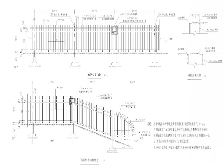 3.隔離欄連接采用螺栓連接,平直段超100米每50米設(shè)套接接頭一處。