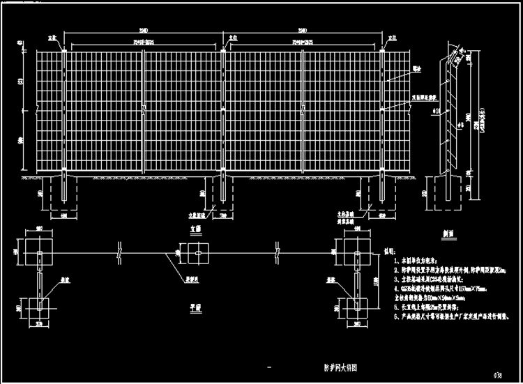 1、本圖簡易圍欄單位為毫米。