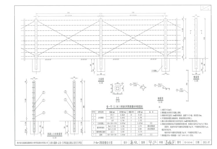 2.F-Bw-C隔離柵立柱采用C25混凝土預制。