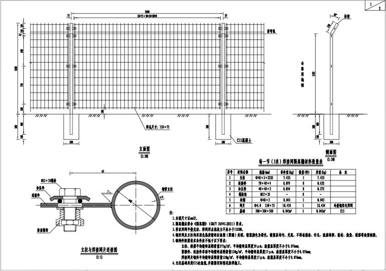 1.本圖噴塑綠色圍欄網(wǎng)尺寸以mm計。