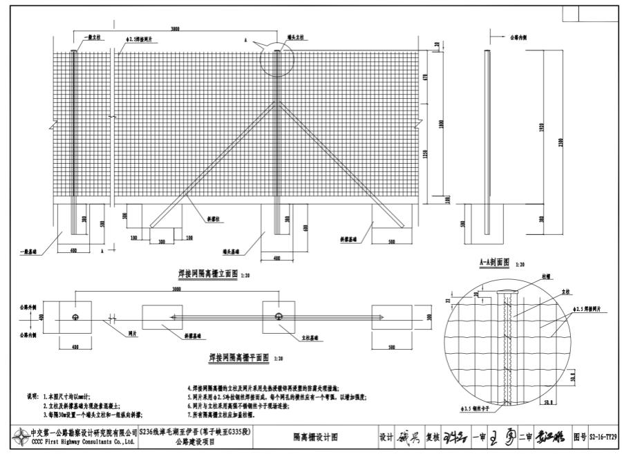 4.焊接網(wǎng)隔離柵的立柱及網(wǎng)片采用先熱浸鍍鋅再浸塑的防腐處理措施。