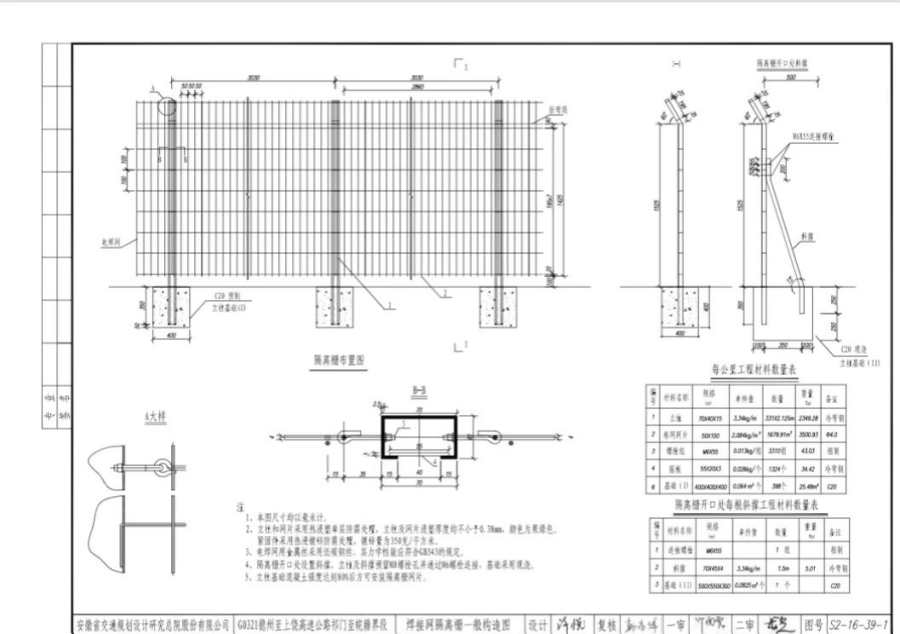 4、隔離柵開口處設置斜撐,立柱及斜撐預留M8螺栓孔并通過M6螺栓連接,基礎采用現(xiàn)澆。