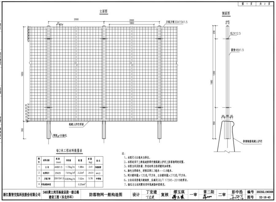 2、本圖適用于上跨高速橋梁外側(cè)混凝土護欄上防落物網(wǎng)的設(shè)置。