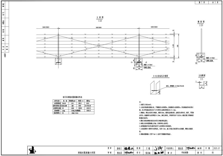 6.材料數(shù)量表中括號內(nèi)數(shù)字適用于立間距為3米的情況。