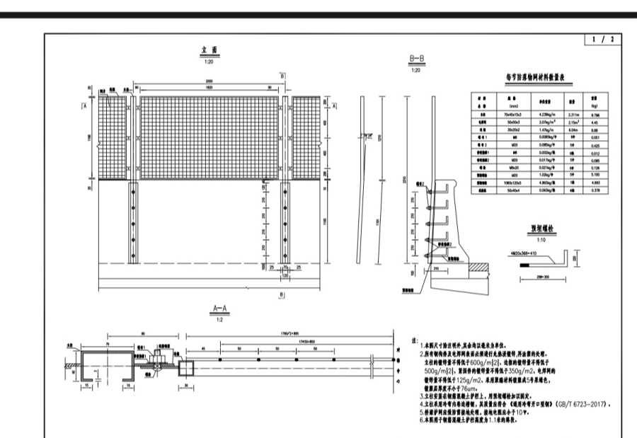 3.立柱安裝在鋼筋混凝土護(hù)欄上,用預(yù)埋螺栓加以固定。
