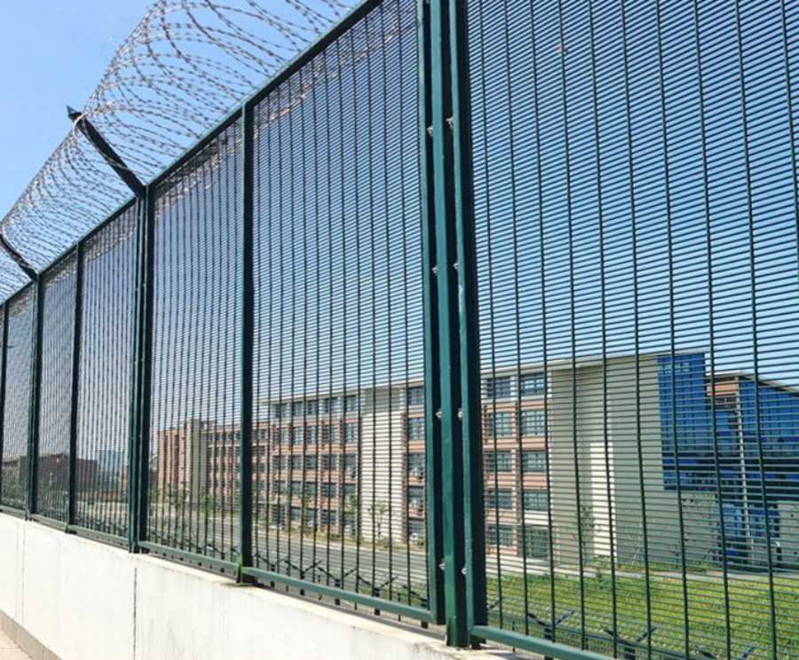 刀刺網(wǎng):金屬網(wǎng)墻頂部設(shè)一道蛇腹型刀刺網(wǎng),材質(zhì)為 304不銹鋼,圈徑為800mm,內(nèi)側(cè)金屬隔離網(wǎng)墻在靠近監(jiān)獄一側(cè)頂端加掛一道φ800mm蛇腹形304不銹鋼刀刺網(wǎng),外側(cè)金屬隔離網(wǎng)墻在靠近道路一側(cè)頂端加掛一道φ800mm 蛇腹形304不銹鋼刀刺網(wǎng),以上蛇腹形刀刺網(wǎng)每米長度不應(yīng)少于7圈,刀片形式宜為BTO-22(芯線直徑2.5mm±0.1mm熱鍍鋅鋼絲,刀片厚0.5mm±0.02mm,刀片長22mm±1mm,刀片寬15mm±1mm,刀片間距36mm±1mm),用于支撐刀刺網(wǎng)的支架伸出刀刺網(wǎng)長度不應(yīng)大于50mm。內(nèi)徑線為φ2.5高熱鍍鋅鋼絲,刀片為不銹鋼。混凝土基座:600mmX600mmX800mm,標(biāo)號C25。