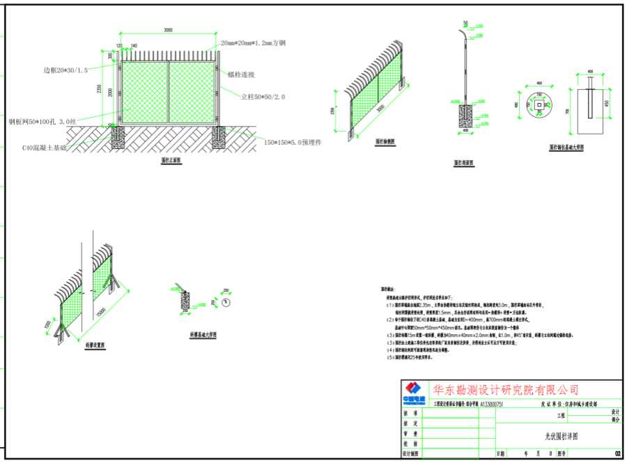 (5)圍欄鋼柱間距可根據(jù)現(xiàn)場情況適當(dāng)調(diào)整。