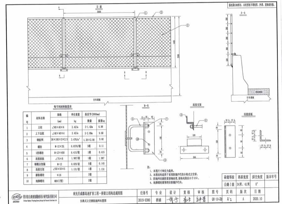 2、本圖結構適用于采用防撞護欄的分離式立交橋。
