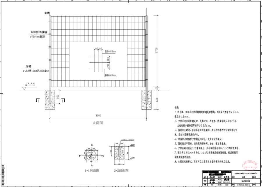 2、立柱采用雙道防腐處理: 先熱浸鋅,再鍍塑,防腐年限應達到25年。立柱的鍍鋅層厚度不小于55um。