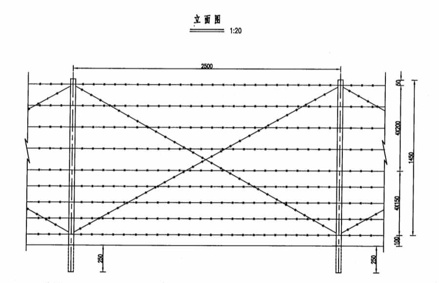 1、本圖為刺鋼絲網(wǎng)隔離柵,尺寸均以毫米計。